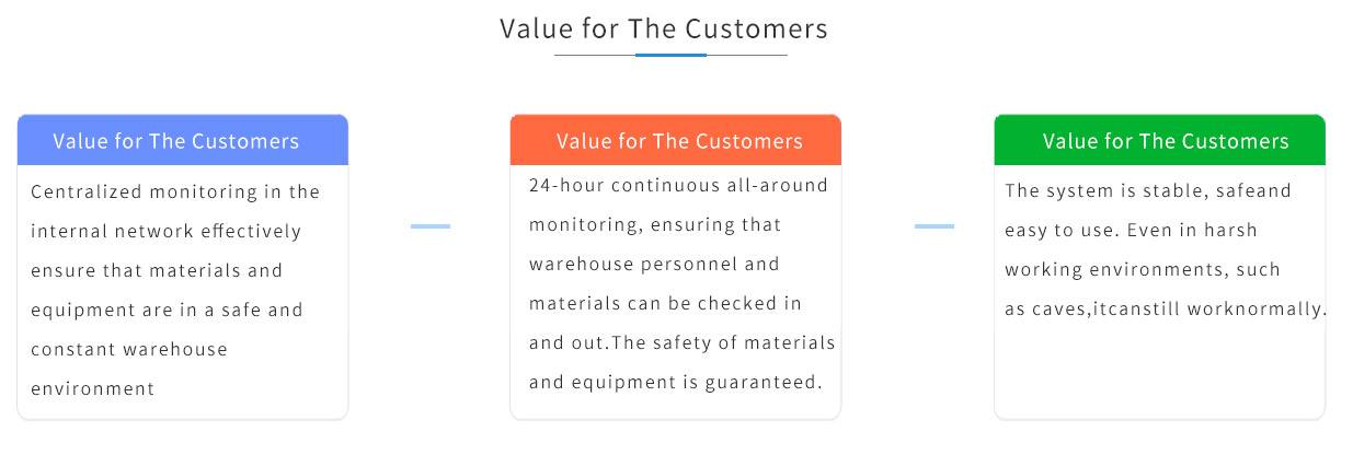 Centralized monitoring in the internal network effectively ensure that materials and equipment are in a safe and constant warehouse environment.
